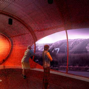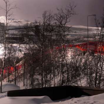Lysmasken är en flyttbar struktur i sträckmetall som markerar gränsen mellan den växande Järngruvan och den befintliga staden Kiruna. Det är en visuellt "flygande" röd lysande gränslinje, som flyttas tillsammans med säkerhetsstängslet, uppskattningsvis vart tredje år 2015-2033. Kirunas järnkropp lutar in under staden, järnbrytningen skapar därför markrörelse och ett växande deformationsområde som man inte längre kan beträda. Detta är anledningen till att staden måste flytta. De flesta människor i Kiruna har gruvan som sin arbetsgivare och gruvan har ändrat på förutsättningarna för staden under hela dess 100-åriga historia, men nu mer dramatiskt än någonsin. Lysmasken kommer bli en lysande gränslinje som man kan gå under, längs med eller inuti, i små publika rum direkt på gränsen. Här kan en intresserad besökare få utblickar och insyn över deformationszonen på andra sidan och de små kokongliknande kropparna kan över de kommande åren utvecklas till ett vandrande arkiv för kollektiva minnen av den specifika lokala kulturen och naturhistorien som Kiruna lämnar efter sig inne i deformationszonen.
